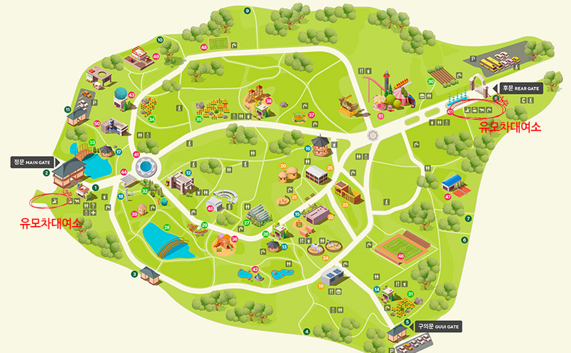 아이와 함께라면 유모차 대여 서비스는 필수죠! 서울 어린이대공원에서는 정문과 후문에서 유모차를 대여할 수 있어요.